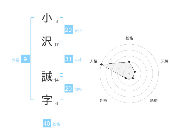 小沢 誠字さんの地格は20画の1点!