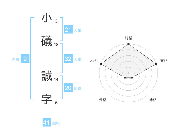 小礒 誠字さんを姓名の画数から五運を鑑定