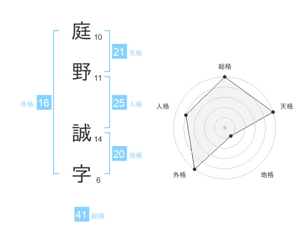 庭野 誠字さんの外格は16画の5点!