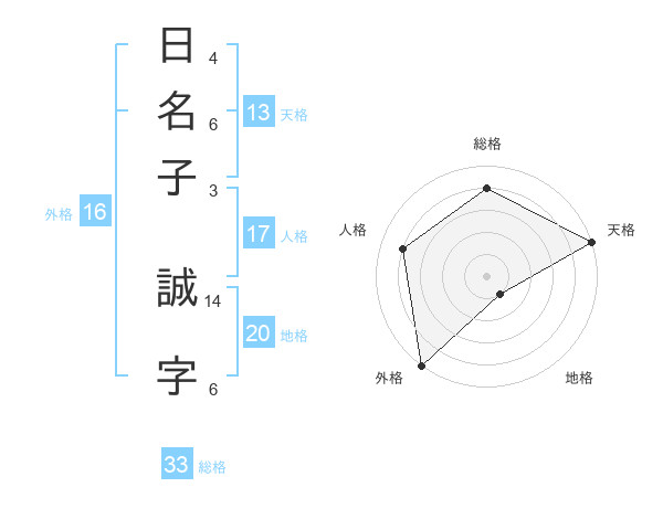 日名子 誠字さんを姓名の画数から五運を鑑定
