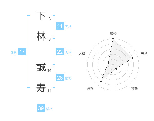 下林 誠寿さんの総格は39画の5点!
