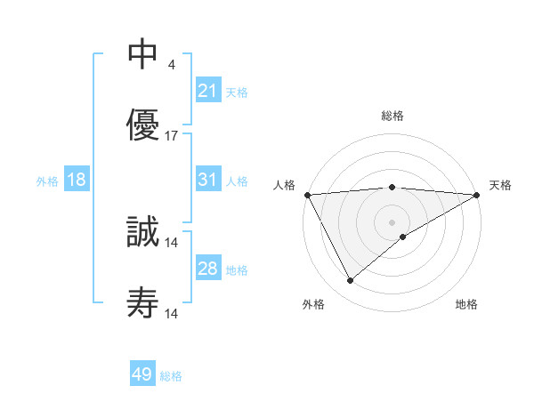 中優 誠寿さんの総格は49画の2点!