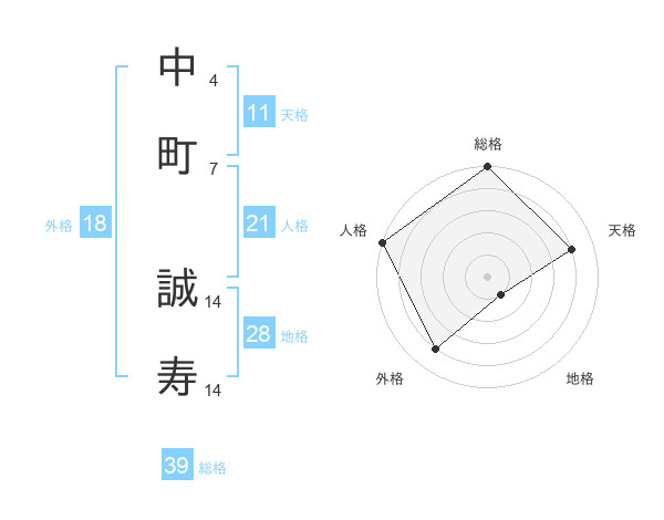 中町 誠寿さんの天格は11画の4点!