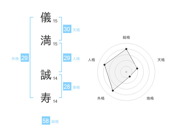 儀満 誠寿さんの総格は58画の4点!