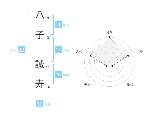 八子 誠寿さんの総格は39画の5点!