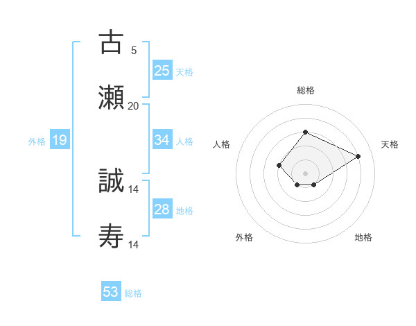 古瀬 誠寿さんの総格は53画の3点!