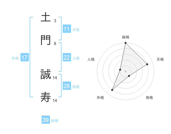 土門 誠寿さんを姓名の画数から五運を鑑定