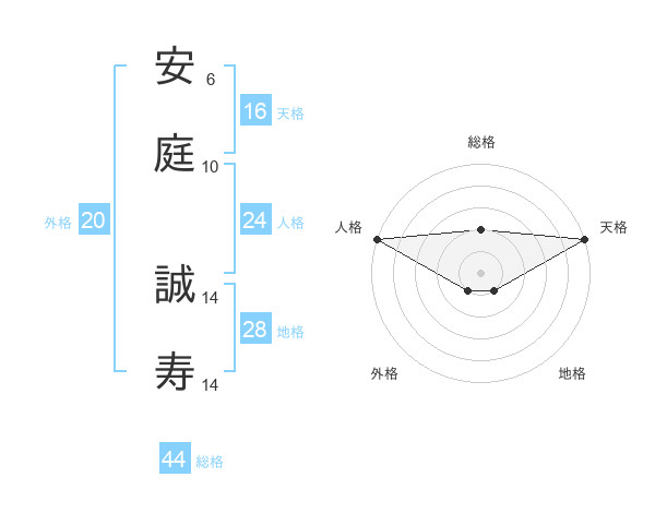 安庭 誠寿さんの総格は44画の2点!