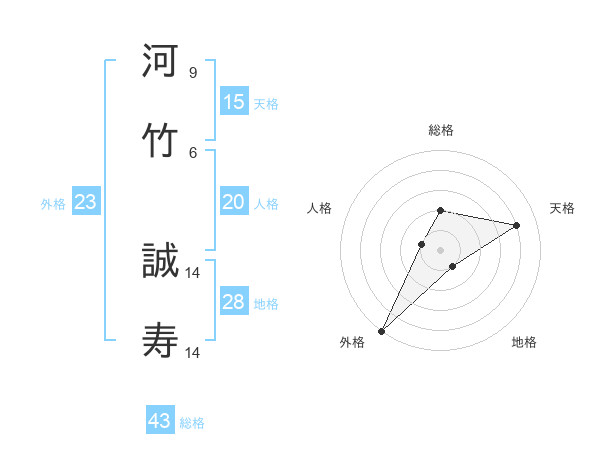 河竹 誠寿さんの外格は23画の5点!