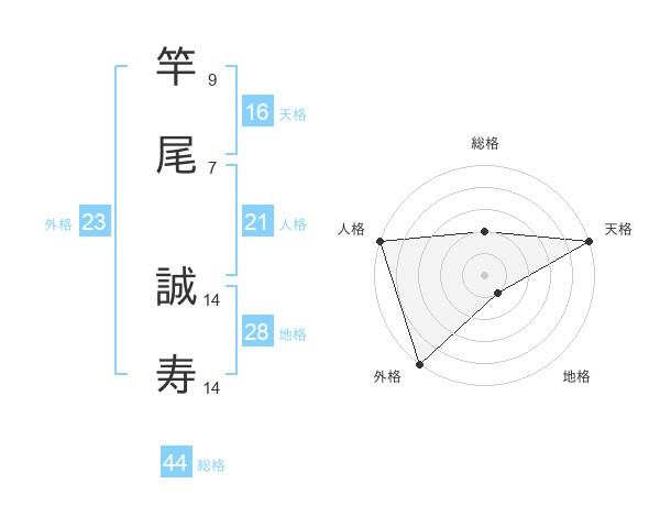 竿尾 誠寿さんを姓名の画数から五運を鑑定