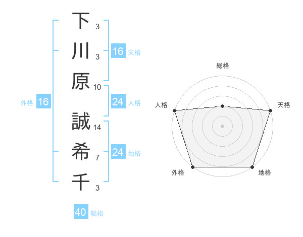 下川原 誠希千さんを姓名の画数から五運を鑑定