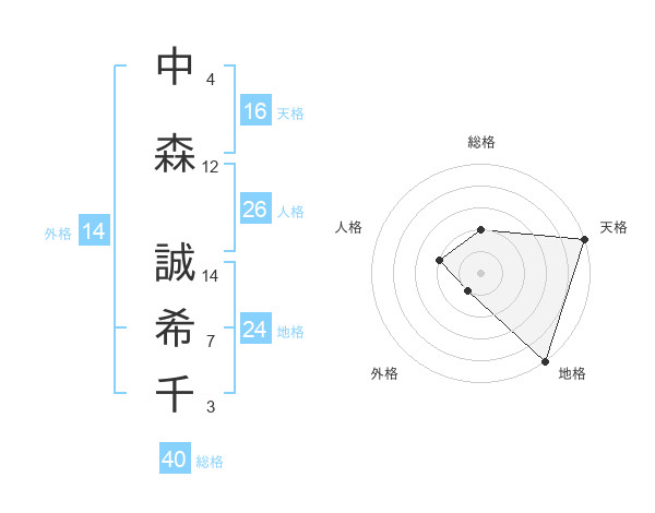 中森 誠希千さんを姓名の画数から五運を鑑定