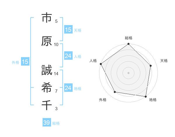 市原 誠希千さんを姓名の画数から五運を鑑定