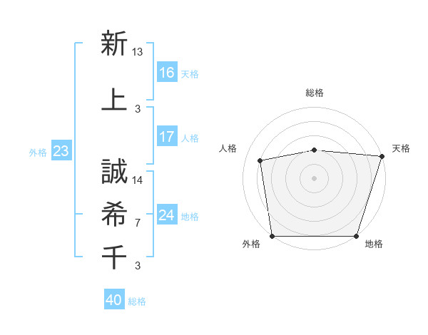 新上 誠希千さんを姓名の画数から五運を鑑定