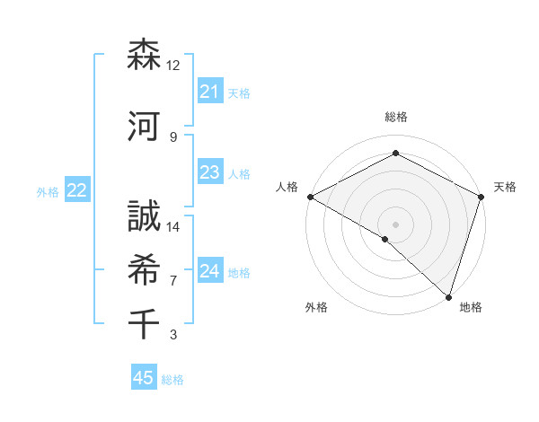 森河 誠希千さんの総格は45画の4点!