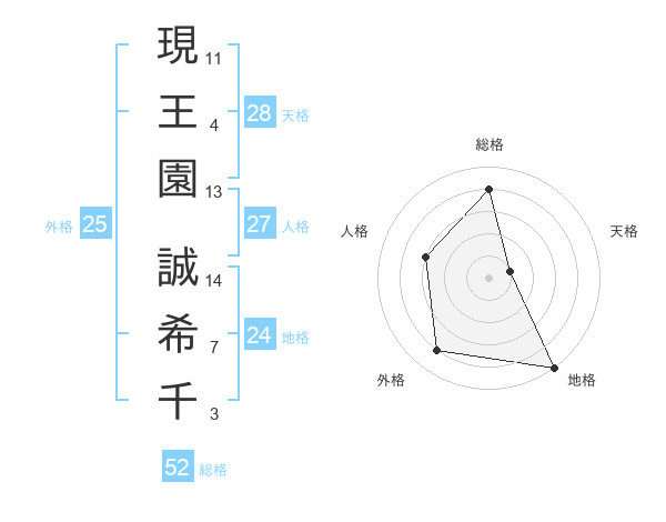 現王園 誠希千さんを姓名の画数から五運を鑑定