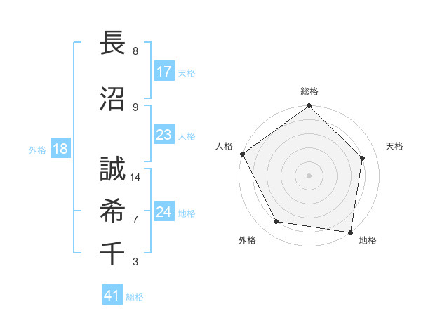 長沼 誠希千さんの総格は41画の5点!
