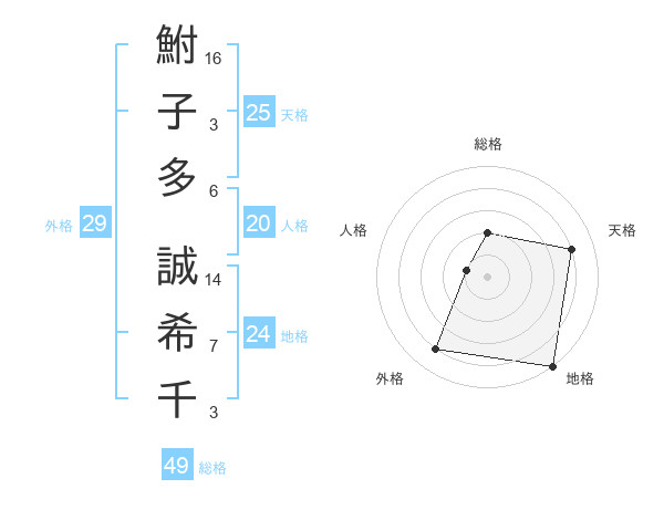 鮒子多 誠希千さんを姓名の画数から五運を鑑定