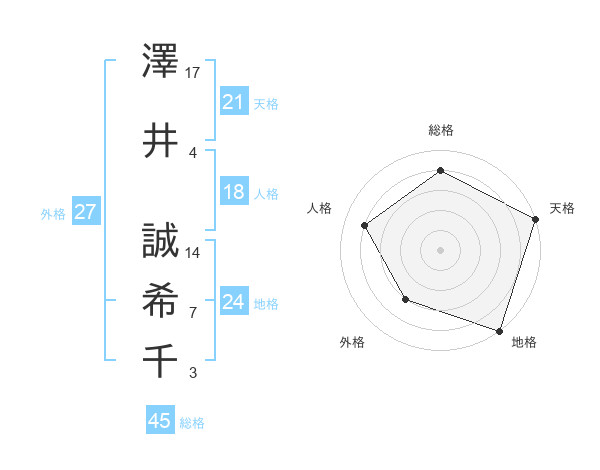 澤井 誠希千さんを姓名の画数から五運を鑑定