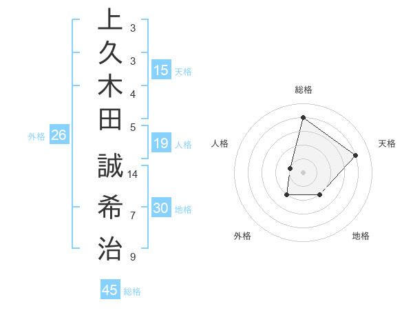 上久木田 誠希治さんを姓名の画数から五運を鑑定