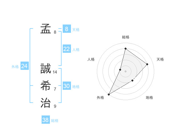 孟 誠希治さんを姓名の画数から五運を鑑定