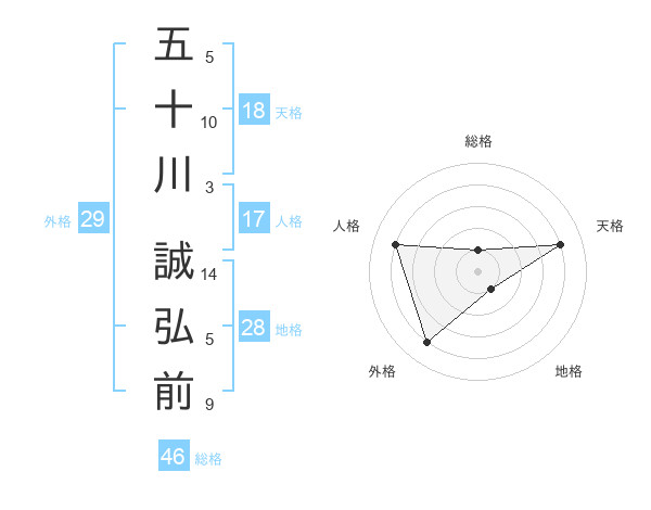 五十川 誠弘前さんを姓名の画数から五運を鑑定