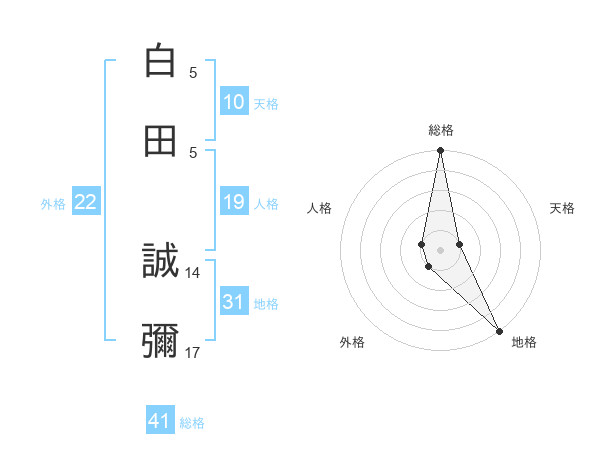 白田 誠彌さんを姓名の画数から五運を鑑定