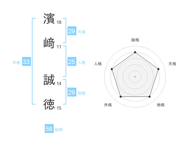 濱﨑 誠徳さんの総格は58画の4点!