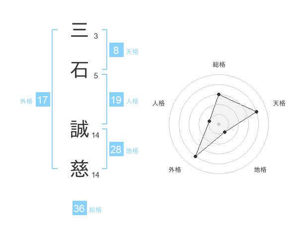 三石 誠慈さんの外格は17画の4点!