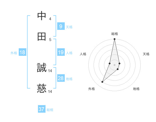 中田 誠慈さんを姓名の画数から五運を鑑定