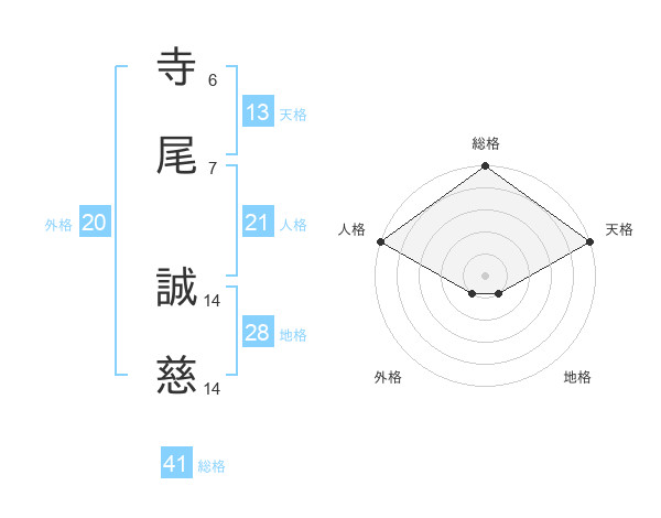 寺尾 誠慈さんの総格は41画の5点!