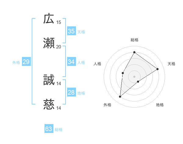 広瀬 誠慈さんの総格は63画の4点!