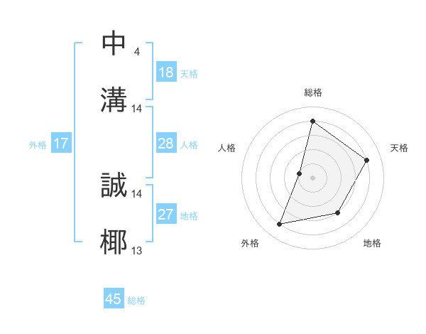 中溝 誠椰さんの総格は45画の4点!