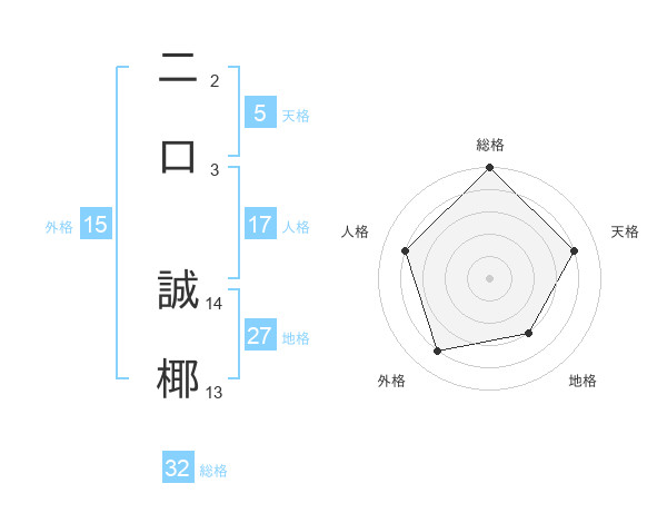 二口 誠椰さんを姓名の画数から五運を鑑定