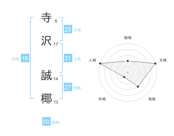 寺沢 誠椰さんの天格は23画の5点!