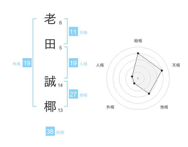 老田 誠椰さんの総格は38画の4点!
