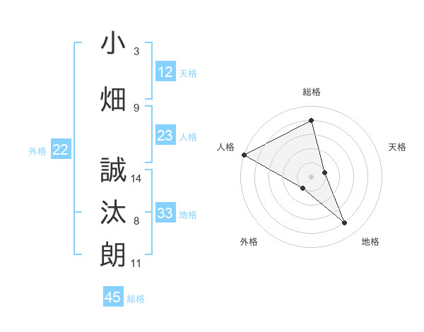 小畑 誠汰朗さんの総格は45画の4点!