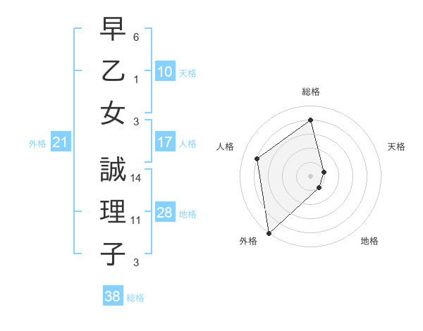 早乙女 誠理子さんを姓名の画数から五運を鑑定