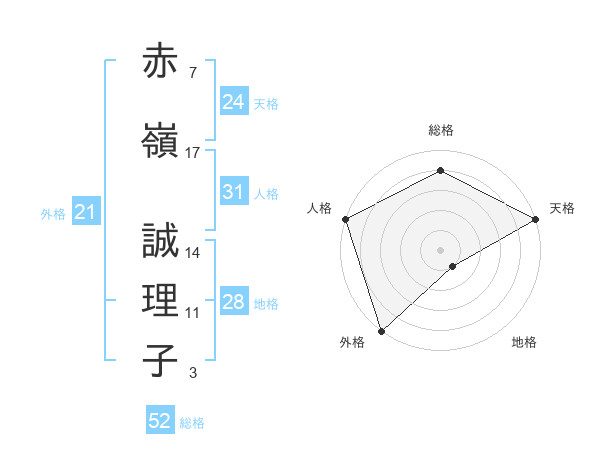 赤嶺 誠理子さんを姓名の画数から五運を鑑定