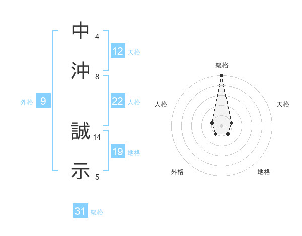 中沖 誠示さんを姓名の画数から五運を鑑定
