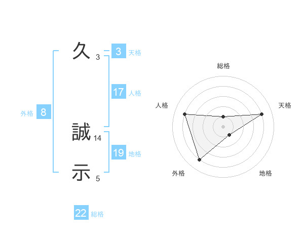 久 誠示さんの総格は22画の1点!