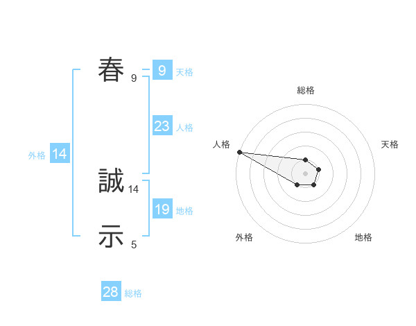 春 誠示さんの総格は28画の1点!