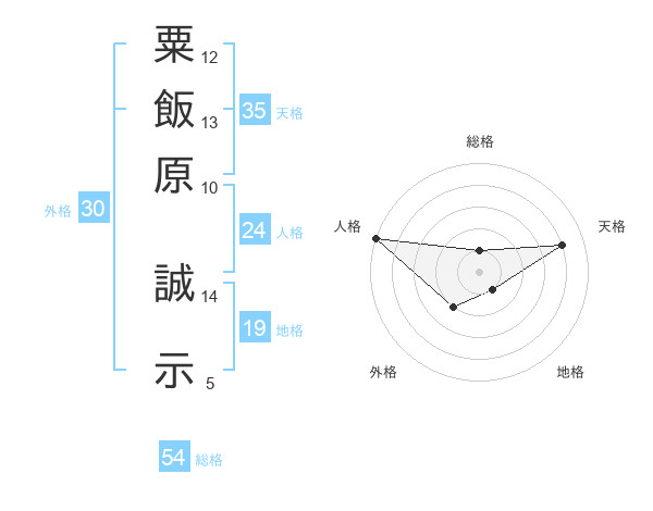 粟飯原 誠示さんを姓名の画数から五運を鑑定