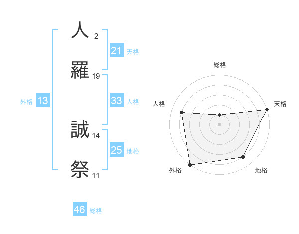 人羅 誠祭さんを姓名の画数から五運を鑑定