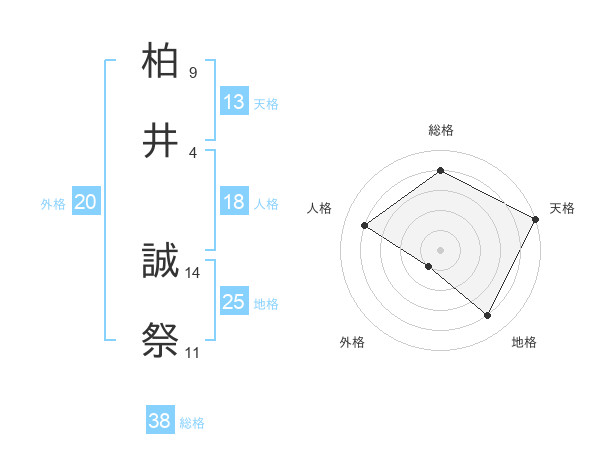 柏井 誠祭さんの総格は38画の4点!