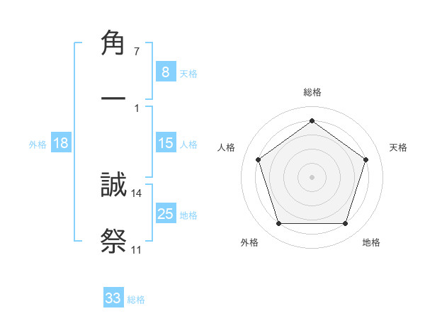 角一 誠祭さんを姓名の画数から五運を鑑定