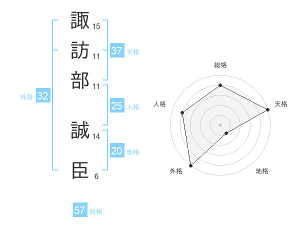諏訪部 誠臣さんの総格は57画の4点!