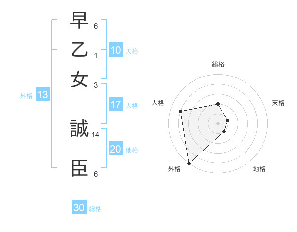 早乙女 誠臣さんを姓名の画数から五運を鑑定