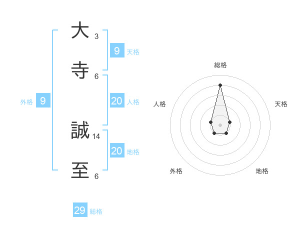 大寺 誠至さんを姓名の画数から五運を鑑定