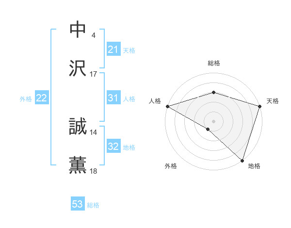 中沢 誠薫さんを姓名の画数から五運を鑑定